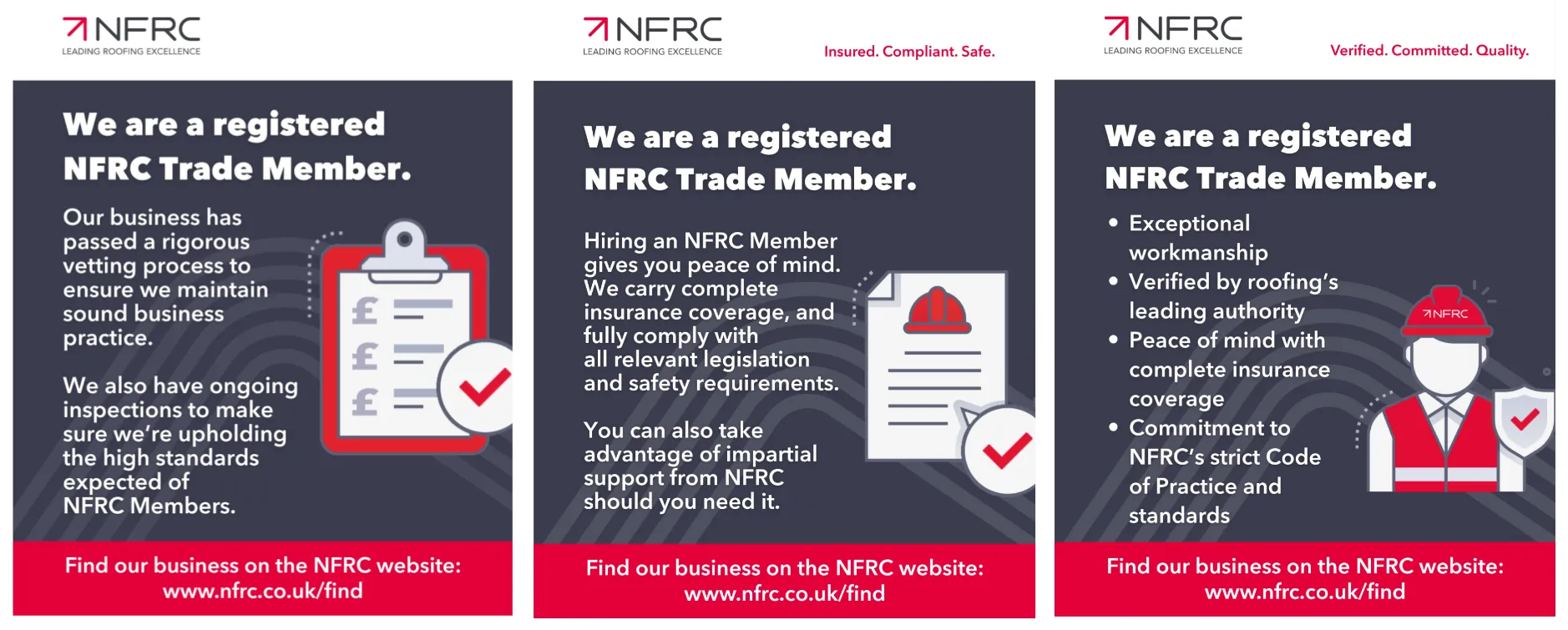 As NFRC members we offer high standards of workmanship and sound business practice through a strict code of practice and vetting procedure, including site inspections and adhering to the Government endorsed standards.